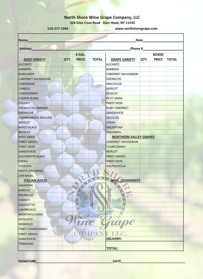 North Shore Wine Grape Co. 328 Glen Cove Road Glen Head, New York 11545